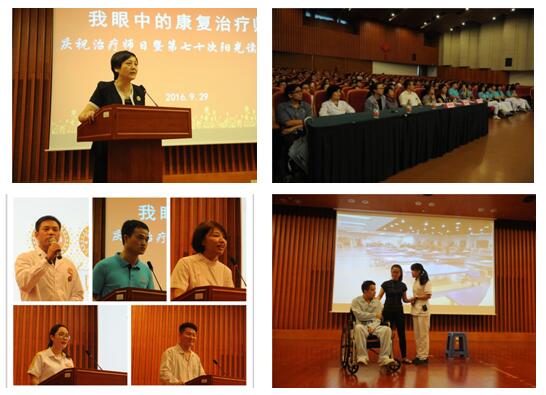 活动由一段记录治疗师们工作成长点滴的VCR拉开序幕。随后,医院(中心)党总支书记乐永林代表班子致辞,向全体治疗师致以节日的问候,对大家在工作中所取得的成绩表示了肯定,并就今后工作提出了希望和要求。接着,在悠扬的钢琴声中开始了“我眼中的康复治疗师”主题演讲,演讲者们分别从医生、护士、学生、患者等角度,结合工作、学习或就医时的经历,描述了各自眼中的治疗师形象,表达了对治疗师或尊敬或感动或自豪或感激的情结。活动中,穿插了由治疗师们自编自导自演的小品《心声》以及康复知识有奖问答,在欢声笑语中为大家普及了康复知识。活动最后,康复治疗部副主任林建华代表治疗师团队发言,希望与大家一起为理想而不懈奋斗。