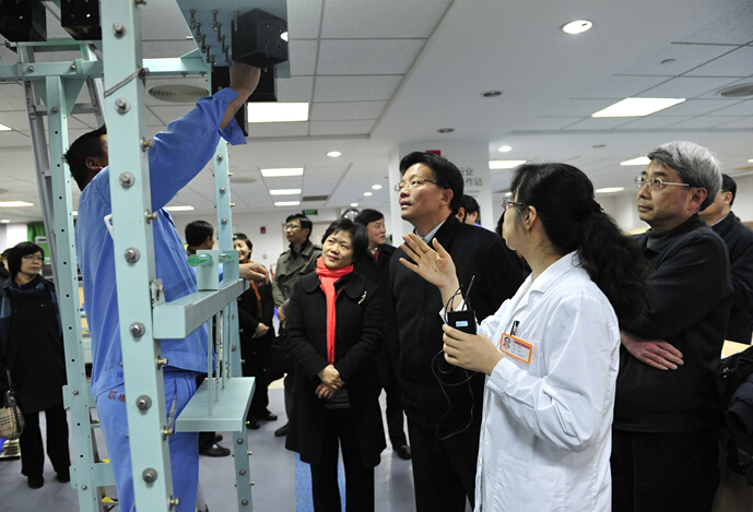 时光辉副市长一行首先来到中心康复业务区域,实地视察了治疗大厅、重症监护病房及各治疗科室,听取了相关工作情况介绍。期间,时光辉副市长详细询问了各类康复设施的功能作用和使用情况,并与部分住院患者进行了亲切交谈,了解他们在中心的康复效果和生活状况。