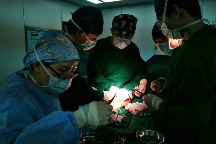 本次手术由医院(中心)骨科副主任医师仲荣洲担任主刀,为足下垂患者进行跟腱延长术+马蹄内翻矫形术的手术。手术难度共有三点:第一,由于患者患病时间久,肌腱挛缩重,关节常合并畸形,局部解剖关系改变。第二,患者小腿远端血供差,肌腱血管神经丰富,容易造成损伤。第三,患者全身情况差,不能耐受较大创伤。