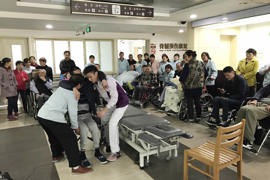 3月11日中午,医院(中心)康复治疗部与护理部共同组织了一场病患安全转移知识技能培训。由康复治疗部物理治疗师陈吉保担任主讲,面向在院护工与病患家属,按照脊髓损伤患者的不同损伤程度,进行不同辅助程度的转移技巧培训。