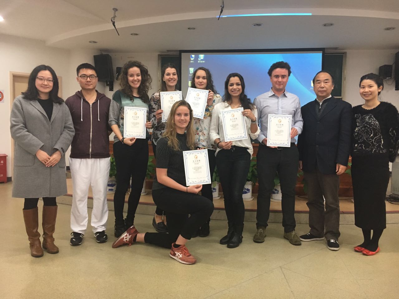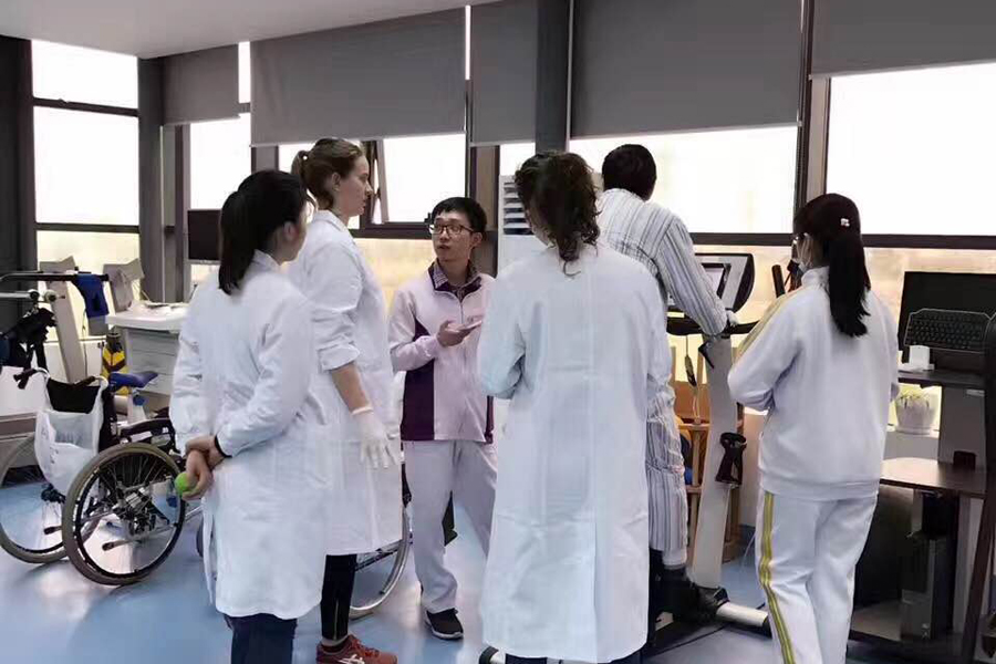 根据荷兰学生的专业情况,医院(中心)安排他们在PT的神经组、脊髓组、骨科组、心肺组和康复工程科进行轮转实习,并遴选出优秀治疗师进行带教。此外,医院(中心)还组织荷兰学生与同济大学康复治疗学系2014级的学生进行了交流与互动,共同探讨了两地的康复教育内容,丰富彼此的知识,开阔了彼此的眼界。实习结束前,6位荷兰学生通过案例汇报的方式,向医疗管理总监褚立希教授和带教老师们报告了实习期间的所见、所学和所想。