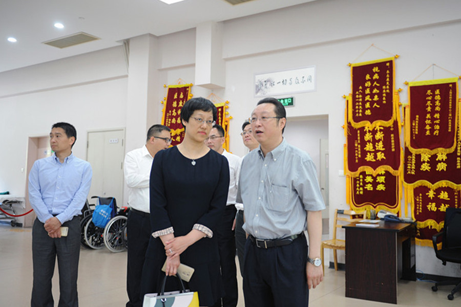 刘骏副理事长对王玮华副区长一行的到访表示热烈的欢迎,并就医院(中心)整体概况、发展历程、医疗业务、科研发展和二期规划进行了详细介绍。随后,考察团一行相继参观了康复门诊、康复治疗大厅、康复病区及天行雕塑园,实地了解了医院(中心)中心各科室功能设置、康复诊疗流程、软硬件设施以及康复服务模式等。