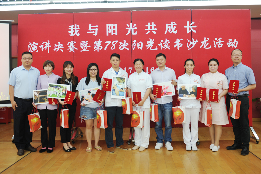 6月16日中午,“我与阳光共成长”演讲比赛决赛暨第78次阳光读书沙龙活动在市养志康复医院(市阳光康复中心)成功举行。作为医院(中心)10周年系列活动之一,本次比赛于3月初拉开帷幕,前期征文共收集到45篇,经评委筛选15篇优秀代表作品入围复赛,在4月底复赛比拼之后,最终9名选手入围决赛。