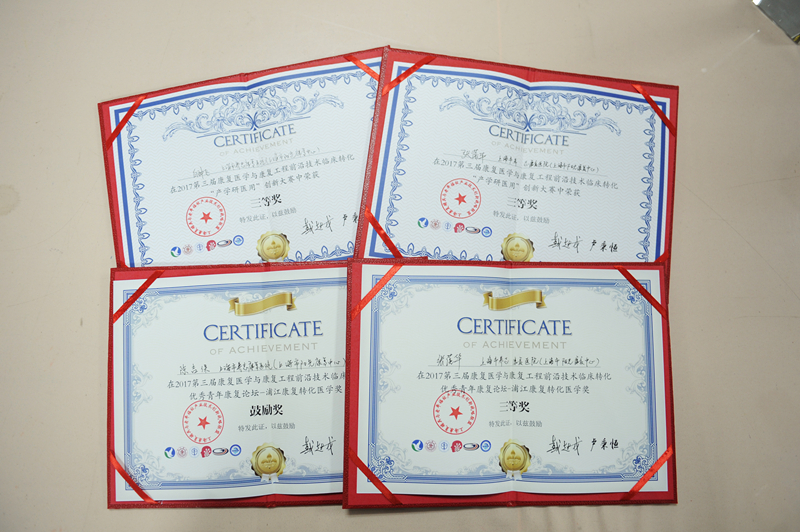 在11月4日举行的第三届国际康复医学与康复工程前沿技术临床转化会议上,市养志康复医院(市阳光康复中心)儿童康复治疗科治疗师长张蓓华获得“优秀青年康复论坛—浦江康复转化医学”“产学研医用”创新大赛两项三等奖、作业治疗师白钟飞获三等奖,物理治疗师陈吉保获论文汇报鼓励奖。