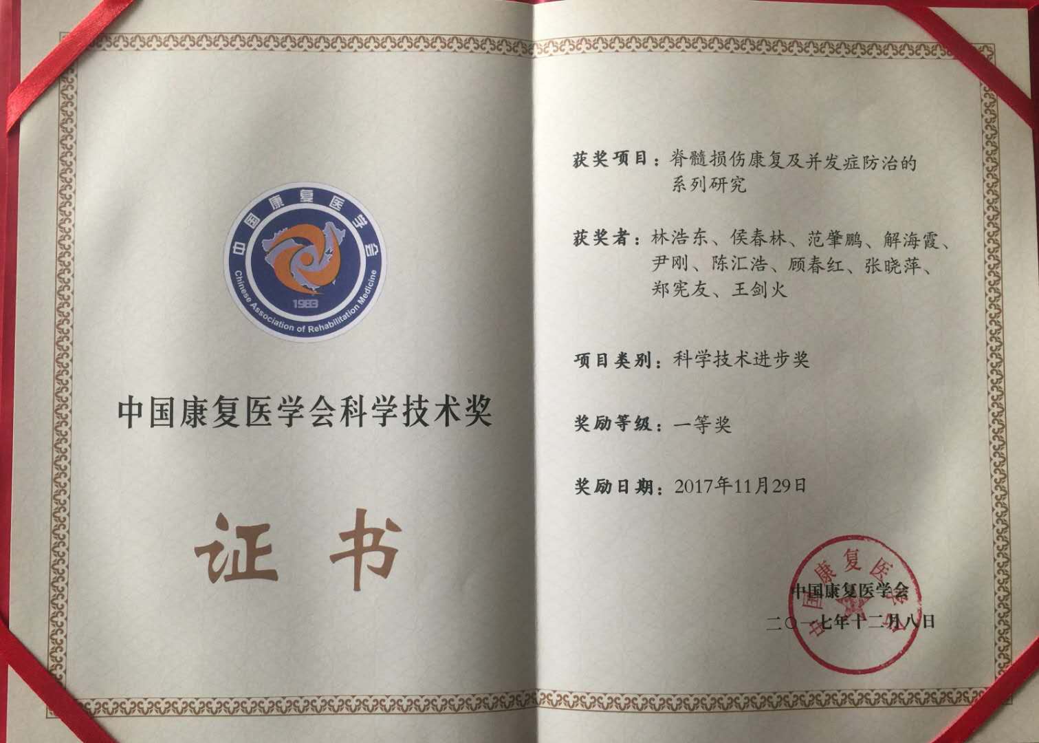 2017年中国康复医学会科学技术奖评审工作于2017年11月29日结束。由市养志康复医院(市阳光康复中心)解海霞担任主要完成人的项目《脊髓损伤康复及并发症的系列研究》,荣获中国康复医学会科学技术奖一等奖。