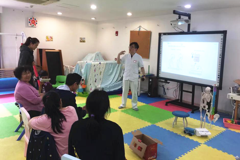 2018年4月29日上午,医院(中心)举办了第五十期阳光宝宝康复沙龙暨家长学校活动。本次活动共有10组家庭参加,由我院儿童物理治疗师施洋洋围绕“人体脊椎姿势及面部姿势的相关知识”为家长们进行现场授课及咨询。