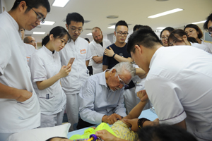 随后,加濑博士向医院(中心)相关临床科室负责人、康复骨干作《肌效贴对于神经疼痛与肿胀的临床应用》讲座, 并针对不同病种的四位病友现场进行肌内效贴临床应用演示,根据病例建议相应治疗策略与康复方案。