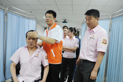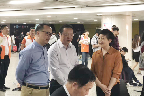 市残联副理事长刘骏在申通集团党建部部长吴昕毅与医院(中心)党总支书记、院长乐永林的陪同下来到现场,亲切问候工作在一线的志愿者们。