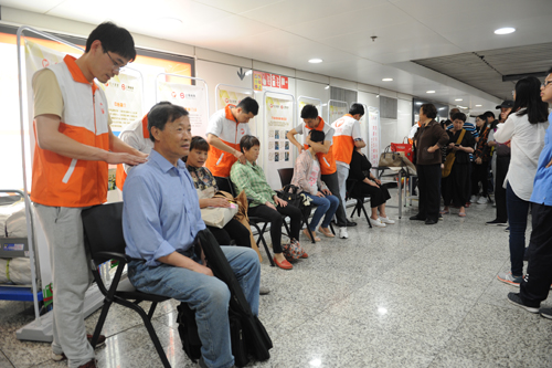在第二十八个全国助残日,上海助残周之际,5月20日,医院(中心)携手申通地铁集团,开展主题为“同心同行传递公益 共建共享健康中国”的公益义诊活动。作为本次阳光爱心周的大轴活动,30余名阳光蒲公英志愿者来到徐家汇地铁站,为广大市民提供康复医疗咨询、康复治疗项目体验、健康讲座、职业病防治等服务。