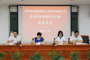 为积极挖掘优秀科普人才,大力开创医学科普工作新局面,7月16日中午,市养志康复医院(市阳光康复中心)举行首届医学科普征文颁奖仪式。医院(中心)院长乐永林、副院长翟华、王成、龚永骏出席颁奖仪式,中层骨干、获奖选手及科室代表共计150人参加。