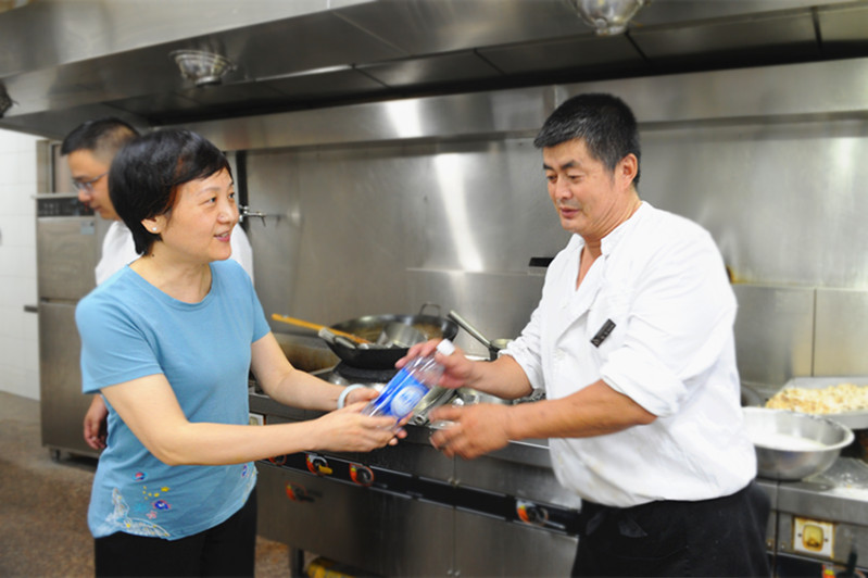 医院(中心)领导先后对食堂餐饮、工程设备、保安等后勤一线员工进行了高温慰问,将清凉饮料一一送到正在岗位上辛勤工作的员工们手中,并详细了解大家的工作情况,询问防暑降温措施是否到位,工作场所还需要哪些改进,叮嘱大家在做好工作的同时要保重好身体,在防暑降温工作措施到位的前提下,稳步推进各项工作的有序开展,把高温环境的“热度”转变为工作的“力度”。