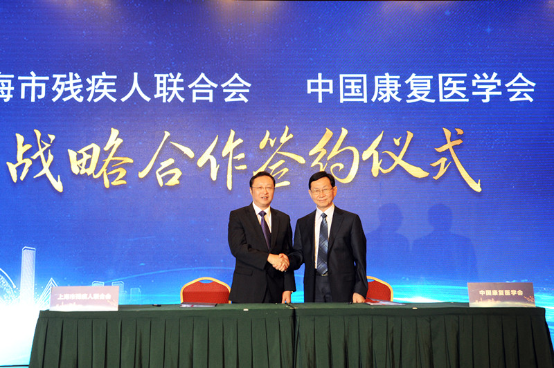 值得关注的是,上海市残疾人联合会与中国康复医学会战略合作签约仪式也在现场举行。上海市残联康复处副处长周萍介绍合作背景后,在与会人员的见证下,上海市残联副理事长刘骏与中国康复医学会党委书记牛恩喜签署合作协议,双方正式达成战略合作,全力推进残疾人社会保障体系和服务体系建设,为未来国内康复医学事业发展提供广阔平台,实现优势互补、要素互通、战略共赢。