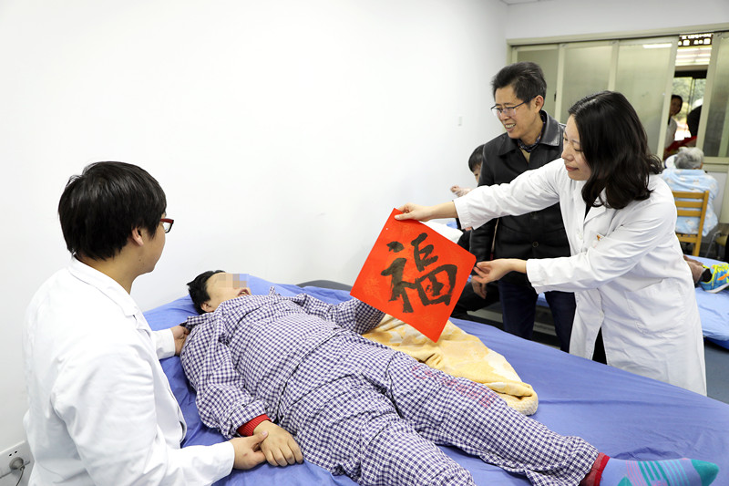 活动现场,书法家们气沉丹田、挥毫泼墨,行、隶、草等多种书体各显神韵,大家一边欣赏书法创作,一边品评春联寓意,在书法家的专业指导下,伤友们聚精会神,反复练习,现场一派欢乐祥和的景象。活动最后,大家把一幅幅吉祥喜庆的大红春联、迎春“福”字送到了病区医务人员、患者手中,为寒冬中的阳光增添了浓浓暖意。