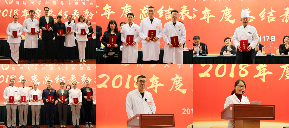 会议由医院(中心)副院长翟华主持。会上,医院(中心)院长、党总支书记乐永林作《以高质量发展引领新征程 谱写新篇章》的工作报告,回顾总结医院(中心)2018年工作并2019年计划进行展望。随后,副院长王成、龚永骏分别宣读《关于表彰2018年度先进集体和先进个人的决定》与陆家嘴物业管理有限公司阳光康复中心管理处《关于表彰2018年度先进集体和先进个人的决定》,刘骏副理事长、周萍副处长与班子领导为获奖集体与个人颁奖。康复治疗部姚加佳、中医科李佩兰分别代表先进集体与先进个人发表感言。