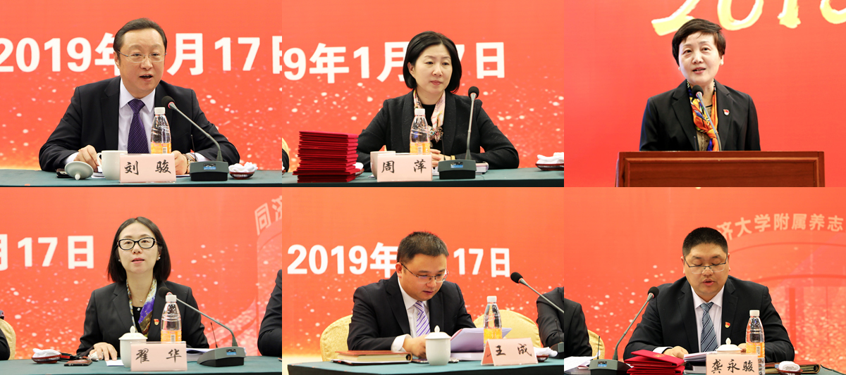 乐永林院长在讲话中指出,2018年是我国改革开放40周年,医院在市残联领导的坚强领导下,探寻高质量发展之源,聚力开创建设新局面,完成了同济大学附属康复医院去筹、揭牌,二期扩建项目稳步进行,圆满承办“阳光杯”专业赛事,科研工作获得突破,业务拓展卓有成效;立足高质量发展之基,合力形成建设新格局,医疗业务稳步发展,教学科研扎实推进,合作布局成效显著,基础建设抓紧抓实,党建发展凝心聚力;2019年,展望高质量发展之路,全力谱写建设新篇章,医院将着力抓好二期扩建项目筹建进度、高层次人才培养和引进、三甲康复医院创建工作、研究中心和重点学科建设、对外交流合作新路径、医院内涵建设与提升与党建工作。