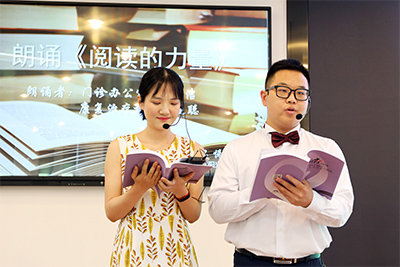 往期的精彩还历历在目,一段优美朗诵将大家拉进了文字的美妙世界。门诊办公室高洁、康复治疗部樊晓聪用《阅读的力量》向大家传递文化的魅力。随后,一部集结了临床各部门人员心血的情景剧《阳光下的成长》,让现场充满欢笑,“演员”生动刻画了阳光人的蜕变和成长,一首《走进阳光》让现场气氛达到高潮。接着,三段分别来自职业社会康复科副科长郭奚的《这些年,我们一起走过的读书沙龙》、中医特色病区主任胡启龙的《与沙龙共成长》、骨与关节康复病区护士张翠萍的《读好书、善思量、勤践行》的主题演讲为沙龙成员分享了心灵感悟,见证了自身成长。