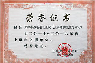 近日,市养志康复医院(市阳光康复中心)荣获2017-2018年度上海市文明单位荣誉称号,这也是医院(中心)连续四届获得该项殊荣。