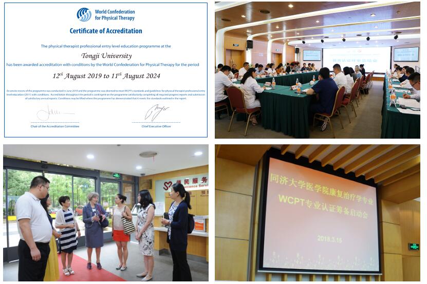 8月12日,同济大学医学院康复治疗学系物理治疗专业以最高认证等级(五年认证期资格)顺利通过世界物理治疗联盟(WCPT)的国际教育认证,成为目前国内外为数不多的取得该项荣誉并获得最高期限认证的院校。