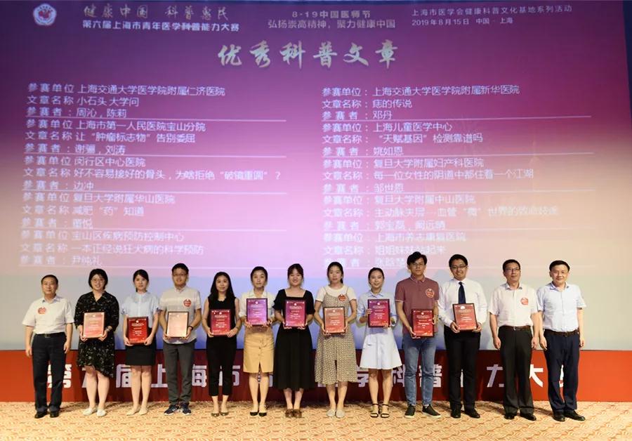 8月15日,第六届上海市青年医学科普能力大赛已顺利落下帷幕。此次大赛由上海市卫生健康委员会健康促进处指导,上海市医学会和上海市健康科普文化基地主办,汇集了全市各医疗单位的众多优秀科普作品,是对本市青年医务工作者科普能力的集中展示。我院在大赛中斩获佳绩,分别获得优秀科普文章和优秀科普视频奖,同时,医院还被评为优秀组织单位。