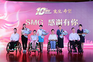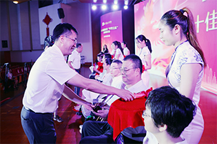 王爱芬理事长在致辞中表示,“希望之家”的成功探索展现了上海对于残疾人关心关注、残健共融的新时代面貌,她希望广大残疾人工作者们要继续脚踏实地,积极探索,让“希望之家”成为伤友们迈向美好生活的起点,成为奔跑在小康路上的坚强支撑。郭咏军理事和徐凤建理事长为上海市脊髓损伤“希望之家”十佳明星伤友颁奖。随后,伤友们还为十年坚持公益,用专业指导伤友的SMG志愿者献上鲜花,表达感谢。
