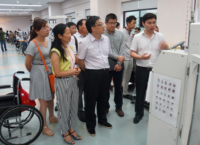 考察团一行听取了有关中心楼宇分布、机构设置、人员配比等方面的情况,并逐一参观了中心药房、挂号处、康复诊疗室、康复治疗厅以及康复病区中的无障碍设施和各类先进康复设备。考察团一行对于中心无障碍环境、国际化的康复理念、高水准的康复服务、先进的设备设施赞不绝口,给予了高度评价。