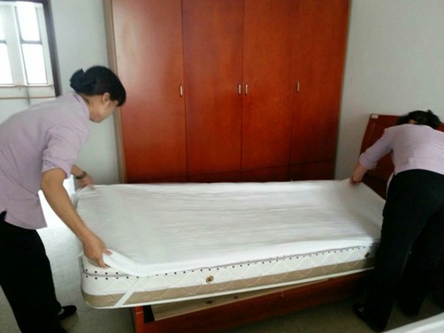 作为承担本次接待工作的主要部门,中心运行保障科在第一时间协同客房部各领班分配各项准备工作,落实参赛运动员和工作人员的住宿安排。由于入住人员的特殊性,中心客房部根据具体要求将4人间改造成3人间,员工们连续多天加班加点完成撤床工作,并完成全面清扫工作,直至每间房间达到需求标准。