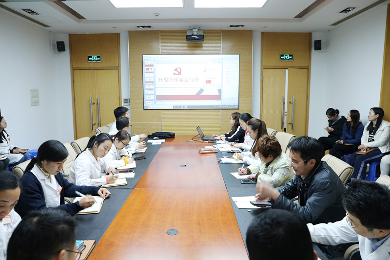 支部书记郭奚从第二届中国进口博览会基本概况;习近平总书记提出的三点倡议;以开放促改革、发展、创新;坚持新发展理念四个方面进行讲解,带领党员同志深入学习习近平总书记重要讲话精神。特别强调作为医生党员在新形势下紧密结合“新时代,共享未来”的主题,不断提高业务水平和服务质量,促进医疗卫生和健康产业的发展。