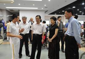 参观期间,乐永林书记向考察团介绍了中心职能分布、机构设置、人员配比等主要情况。随后,考察团实地参观了康复治疗大厅、康复诊疗室、康复病区,各科室负责人就医疗业务开展、康复就医流程、康复设备用途,患者恢复情况等方面向参观人员作详细介绍。