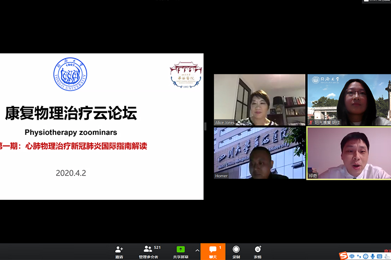 4月2日,首期康复物理治疗云论坛成功举办,本期论坛由同济大学附属养志康复医院与四川大学华西康复医学中心共同主办,主题为心肺物理治疗新冠肺炎国际指南解读,论坛由同济大学附属养志康复医院治疗部主任祁奇主持。