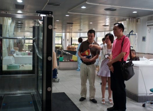 参观过程中, 郑永登书记首先听取了乐永林书记关于中心的整体介绍,对中心的性质定位、机构设置、运营模式、二期建设规划等有了更深入的了解。随后,郑书记一行实地参观了中心的康复治疗区、康复诊疗室、康复病区与康复门诊大厅,详细询问了各项业务的开展情况。