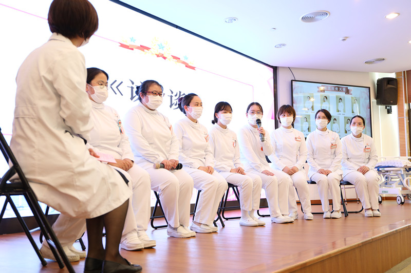 活动伊始,乐永林院长代表班子向各位天使致以节日的问候和崇高的敬意。乐院长感谢大家在我院疫情防控工作中所做出的的贡献,肯定了阳光护士面对疫情快速反应,全力以赴,冲锋在前的无私精神,对我院护理团队在护理工作、科研教学、技能培训等方面的努力付出取得的丰硕成果表示高兴。