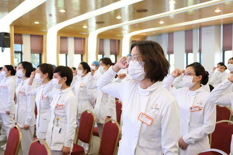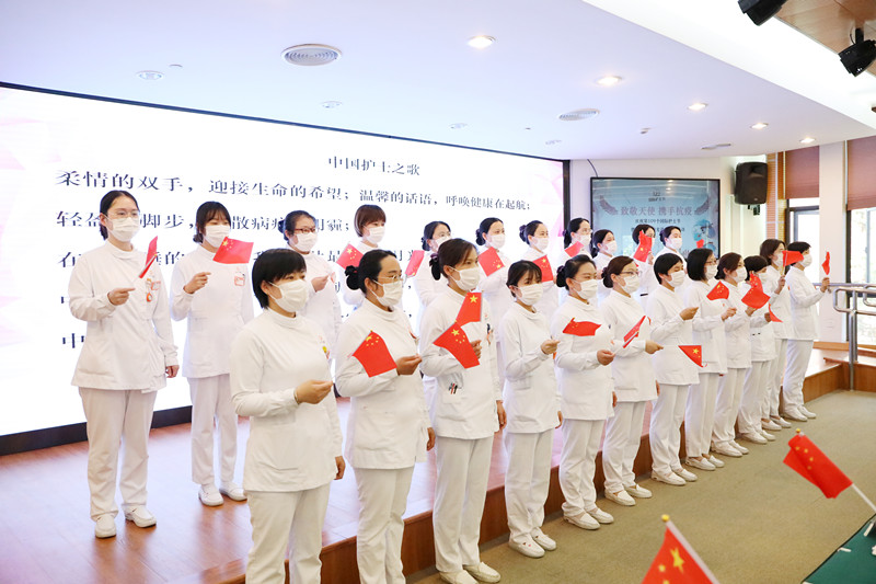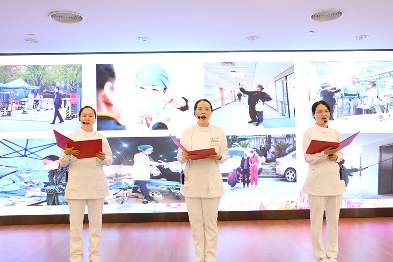 表彰环节,副院长翟华宣读《关于“最美防疫天使”的表彰决定》,班子成员分别为获奖护士进行颁奖。随后的诗朗诵《疫情中的天使》致敬了在抗击疫情中用生命呵护生命的白衣天使,《访谈》节目中,一位位护士用朴素而真挚的话语,讲述了自己在抗击疫情中的感人故事。由医生、治疗师、护士共同出演的情景剧《“疫”往无前》,精心编排的节目不仅生动地演绎了阳光医护人员在新冠肺炎疫情防控中生命筑起疫情防控屏障的感人故事,更体现出他们在平时工作中,始终以爱心、细心、耐心、责任心服务于每一位病人的优质康复服务理念,赢得了现场观众的热烈掌声。宣誓仪式上,每位护士高举右手,庄严宣誓,表达了对护理工作的热爱,为护理事业奋斗终生的决心,活动在全体护士共同合唱的《护士之歌》中落下帷幕。