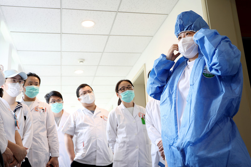培训中,感控科同事从医废分类、三区划分、清洁消毒等方面介绍了疫情预防与控制的具体要求,重点讲解了个人防护用品的使用与穿戴,并为大家演示正确穿脱防护服操作,在穿脱过程中提醒容易忽略的细节。培训现场,来自各个科室的医护人员全神贯注,仔细记录下每一个步骤,认真参与个人防护的穿脱训练。