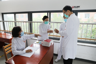 在医院应急防控小组的统一部署下,各职能部门通力配合、精心组织、周密安排,迅速划分核酸检测工作区域,成立鼻、咽拭子采样小组,于6月19日完成采集点准备工作,1小时招募采样护士12名。6月22日,医院针对采样员开展指导培训,包括出夜班、进夜班的护士利用休息时间接受统一培训,并于现场进行真人实操训练与考核,确保采样工作能够顺利高效高质量完成。