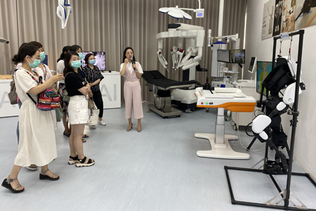 为了深入领会习总书记重要讲话精神,认真学好党史、新中国史、改革开放史、社会主义发展史,8月4日,浦东门诊党支部组织全体党员前往张江集团“四史”教育基地——张江人工智能岛参观学习。在人工智能岛AI体验中心,大家参观了人工智能在家居、教育、金融、制造、医疗、园区管理等各领域的应用场景,体验了智能课堂管理系统、同声传译系统、远程虚拟现实教学等设施。尤其是在“AI+医疗”场景下,新一代下肢外骨骼康复机器人可帮助下肢瘫痪的患者进行辅助行走、康复训练;仿生机械手、外骨骼机器人,给了残障人士更多回归正常生活的希望。