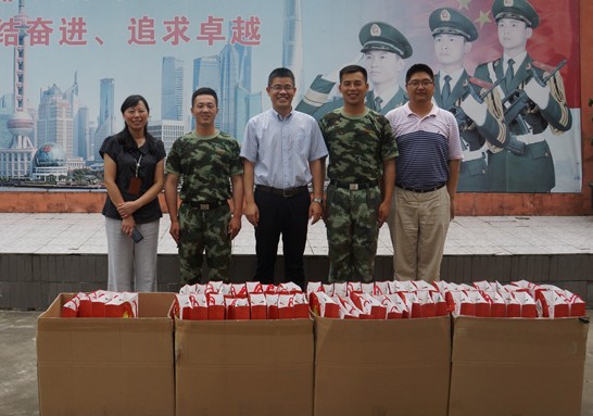 “八一”建军节来临之际,7月21日-22日之间,中心党总支书记乐永林、副主任傅传威等一行先后前往中山派出所、松江区公安消防支队、上海武警第五支队十一中队等共建单位,慰问在炎炎夏日里坚守岗位的武警官兵。