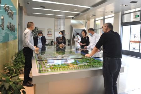 在医院沙盘前,龚永骏副院长向考察团介绍了我院建筑分布、功能定位、发展规划等概况。随后考察团一行实地参观了我院门诊大厅、治疗大厅、康复病区等医疗业务工作开展区域,并在龚副院长的详细介绍下,对医院管理模式、诊疗流程、康复特色及业务开展情况有了进一步了解。