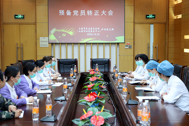 10月23日上午,市养志康复医院(市阳光康复中心)护理党支部召开党员大会,讨论胡佳丽同志预备党员转正相关事宜,护理党支部全体党员参加会议,由支部书记陆静主持会议。