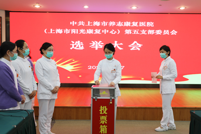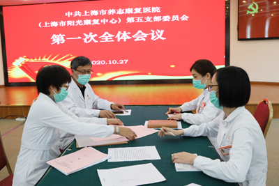 根据沪阳康党总支[2020] 9号文件《上海市养志康复医院(上海市阳光康复中心)党组织换届选举工作实施方案》的精神, 10月27日上午,医院(中心)第五党支部召开党支部换届选举大会,会议由第五党支部选举召集人许剑蕾主持,医院(中心)党总支委员孙东辉出席会议并讲话。