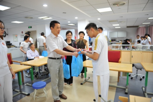慰问团一行先后来到中心各门诊科室、康复治疗大厅、康复病区等中心重点工作区域,亲切慰问了在酷暑中坚守岗位的工作人员们。任勤相书记代表市级机关工作党委向认真工作、辛情付出的医技护专业人员致以崇高敬意,并亲自发放了高温慰问品,衷心感谢他们冒着高温坚守岗位、尽职尽责服务群众的奉献精神。