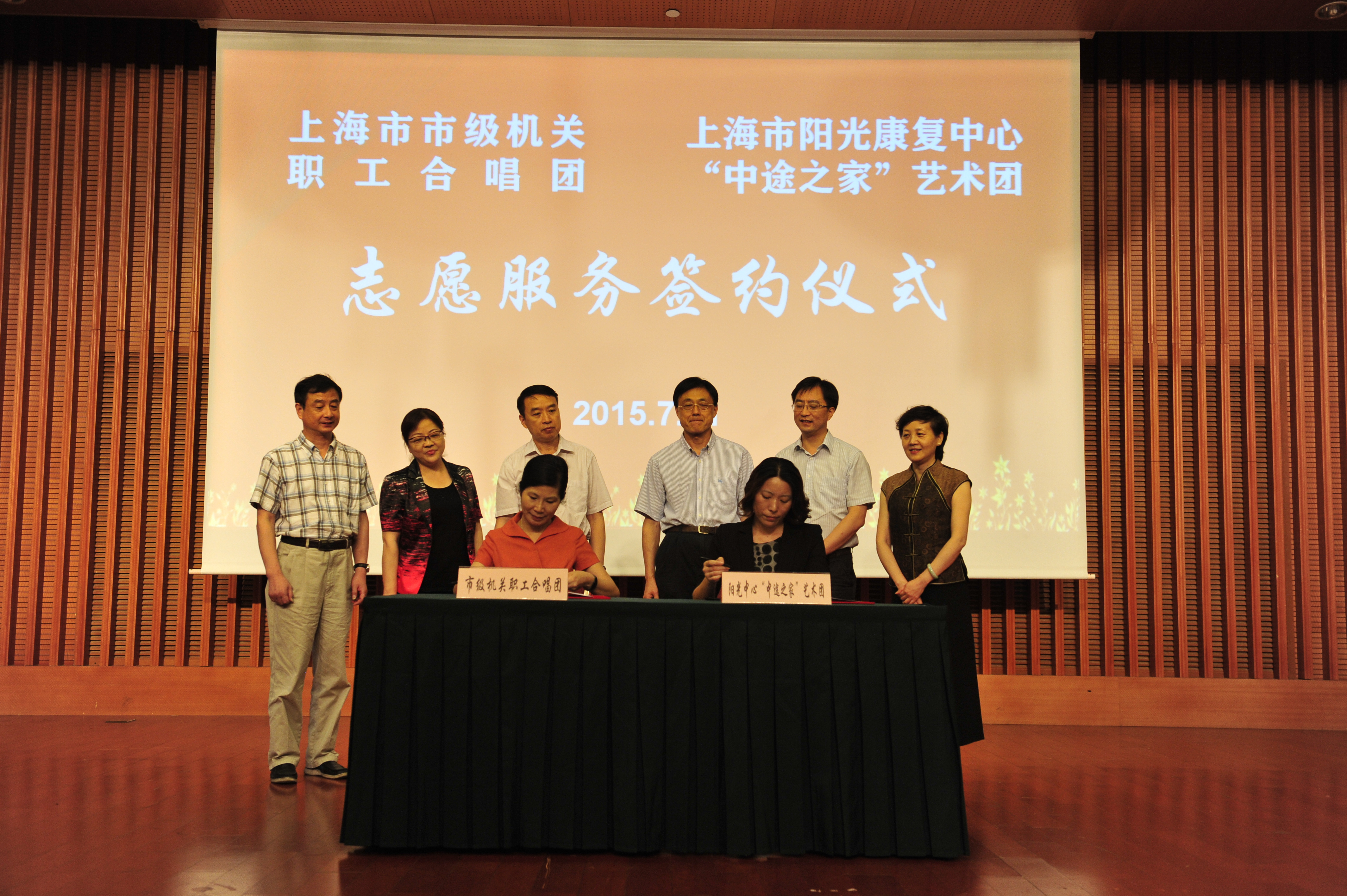报告会还举行了阳光康复中心“中途之家”艺术团与上海市市级机关职工合唱团的志愿服务签约仪式,“中途之家”艺术团负责人解海霞与市级机关职工合唱团团长莫一平分别代表双方进行签约。随后,“中途之家”艺术团与市级机关职工合唱团成员现场为观众献上了一场高质量的文艺汇演。 “中途之家”艺术团献上了手语表演《让世界充满爱》、朗诵《父亲》、歌曲《当你老了》、舞蹈《我有我的young》等不同形式的节目;市级机关职工合唱团的艺术家们演唱了《在那桃花盛开的地方》、《相信》、《阳光路上》等多支耳熟能详的曲目;压轴大合唱《我的未来不是梦》更是让在场观众深深的感受到真情交融、爱心传递的艺术魅力。