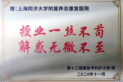作为中国康复医学会康复护理专科护士实训基地,医院(中心)护理部牵头组织,制定了详细规范的带教计划,安排学员完成了神经康复科、脊髓损伤康复科、骨与关节康复科、PT、OT、ST、重症病房、心肺功能室的轮转学习及18项康复护理相关操作技能的培训。通过整整六周的康复护理操作技能训练,理论结合临床实践,使得学员们树立了先进的康复理念,牢固掌握了康复专科知识和康复护理操作技能。顺利结业后,第十三期康复专科护士向我院赠送了“授业一丝不苟解惑无微不至”铜牌。