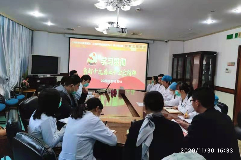 最后,支部书记沈敏同志讲话。她要求大家做到:一是要把学习宣传贯彻党的十九届五中全会精神作为当前和今后一个时期的重要政治任务。二是要把贯彻落实全会确定的战略举措与新时代使命任务结合起来,坚毅前行、争先创优、攻坚克难。三是要坚持深入实施创新驱动发展战略,加快康复、精神、中医等学科建设,努力建设创新型门诊部。