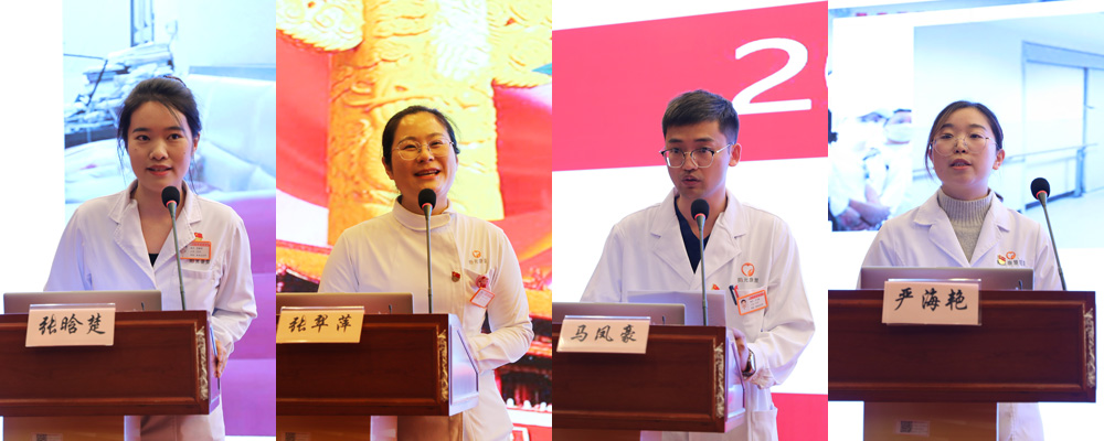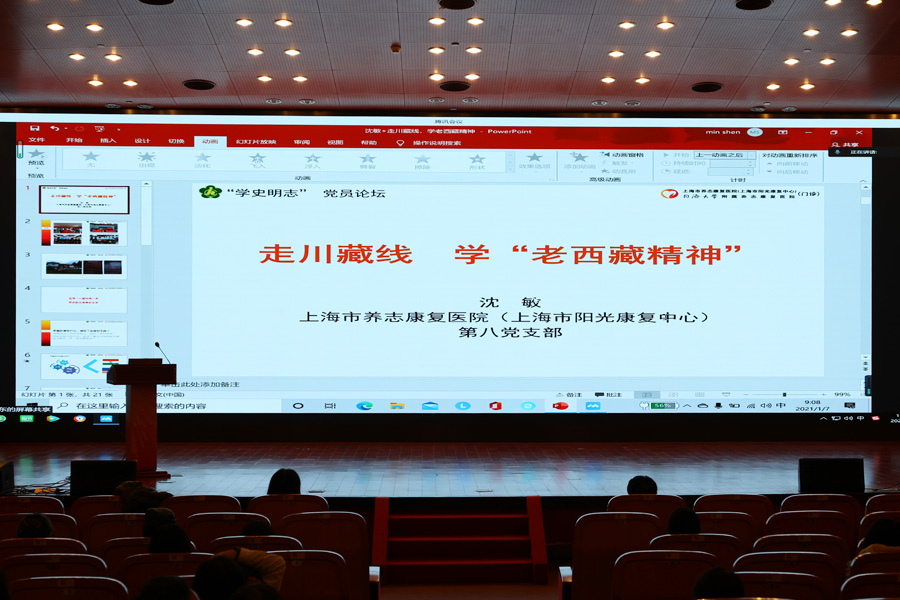在交流分享环节中,浦东门诊部主任沈敏线上演讲《走川藏线 学“老西藏精神”》,分享了西藏康复服务行的亲身经历;康复治疗部治疗师张晗楚的《芳华青春,“新”心相印》,呼吁大家做新时代残疾人事业的奋进者。骨与关节康复病区护士张翠萍的《学“四史”、铭初心、守护健康》,深化大家对护理工作者的理解与认识;康复治疗部治疗师马凤豪分享了《不负邵华,砥砺前行——美国一年学习感悟》,感谢医院提供的学习机会,赞美祖国的繁荣富强;人事科严海艳的《以青春之信仰、筑时代之篇章》,号召青年人敢于追梦,努力奋斗,做时代的文明先锋。