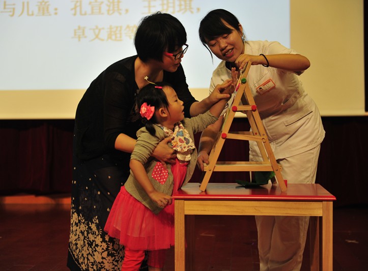 一支凝聚着特殊儿童康复历程的短片后,中心党总支书记乐永林致欢迎词。随后,中心儿童康复科治疗师长张蓓华对2014-2015年度智力残疾儿童康复救助项目进行了总结汇报,向与会人员介绍了项目背景与意义,分享了项目开展的经验与成效。成果展示环节中,孩子们在舞台上热情洋溢的表演感染了在场的每一个人,悠扬的歌声、欢乐的舞蹈让大家看到了他们在中心康复过程中长足的进步和喜人的康复成果。特殊儿童家长用朴质的语言和真挚的情感,讲述他们从康复前的辛酸与迷茫,到来中心后看到孩子们一次次康复、一步步成长的感动与欣慰,由衷感谢中心康复治疗师对孩子们所付出的爱,感谢中心以专业的技术和悉心的关怀让他们的生活发生了质的改变,帮助他们和孩子们共同成长,给孩子们的将来带来了希望。发自肺腑的表白让现场观众的泪水与笑容交织,深深的感受到真情交融、爱心传递的感动。现场,还为最佳宝宝、家长、治疗师和志愿者颁发了奖项,感谢他们一路以来的付出与陪伴。