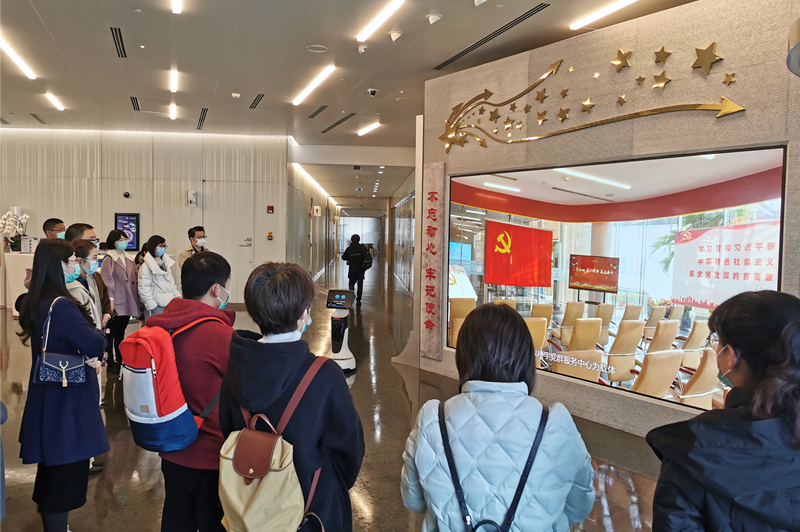参观中,大家跟随人工智能讲解机器人进行了参观学习,对陆家嘴金融城党群建服务中心的党建理念和活动载体有了深入的了解,他们的党史党课、主题展览、爱心公益、技能培训、竞技活动、兴趣爱好六大主题活动充分激发了党组织活力和党员们的凝聚力。大家纷纷表示,要学习陆家嘴金融城党群服务中心的宝贵经验和特色亮点,将医院(中心)的党建工作与业务工作融合,建设医院党建阵地,努力形成支部特色,进一步凝心聚力、增强干事创业的信心与动力,助力医院事业蓬勃发展。