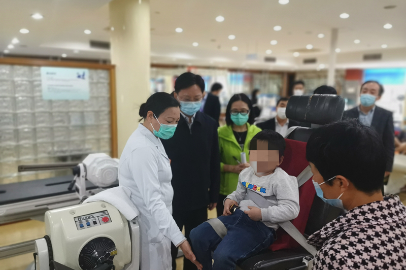 杨峥副书记一行实地参观了成人康复区域、三维步态分析实验室、儿童物理治疗室、儿童作业治疗室、儿童感觉统合训练室、中医康复室等重点康复区域。期间,杨峥副书记详细询问了我院浦东院区康复服务的疾病种类及特色优势,并与患者及家属亲切交谈,关心他们的康复情况。杨峥副书记对医院专业的康复水平、先进的康复设施、人性化的康复服务予以了高度评价,希望在儿童康复领域继续加大研究和探索,为本市各类残疾儿童的康复做出更多的贡献。