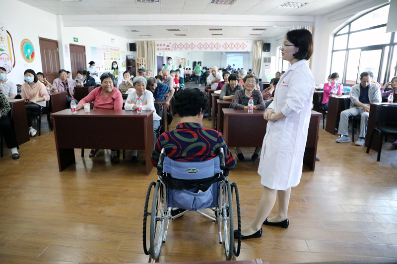 签约现场,我院第五党支部书记许剑蕾与松江区洞泾镇社区卫生服务中心党支部书记张洁分别代表双方单位进行党组织结对共建签约,双方表示今后要相互学习交流,联合组织社区公益活动,为社区公益事业贡献力量。随后,双方支部党员来到社区开展联合义诊,为居民量血压、测血糖、康复护理咨询等,我院党员还为社区居民进行了《辅具的应用》科普讲座,向居民特别是残疾朋友介绍了辅具使用的重要性与日常使用的注意事项,通过轮椅、助行器、四脚拐等辅具进行了现场演示。