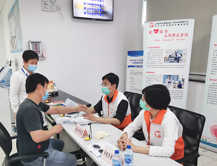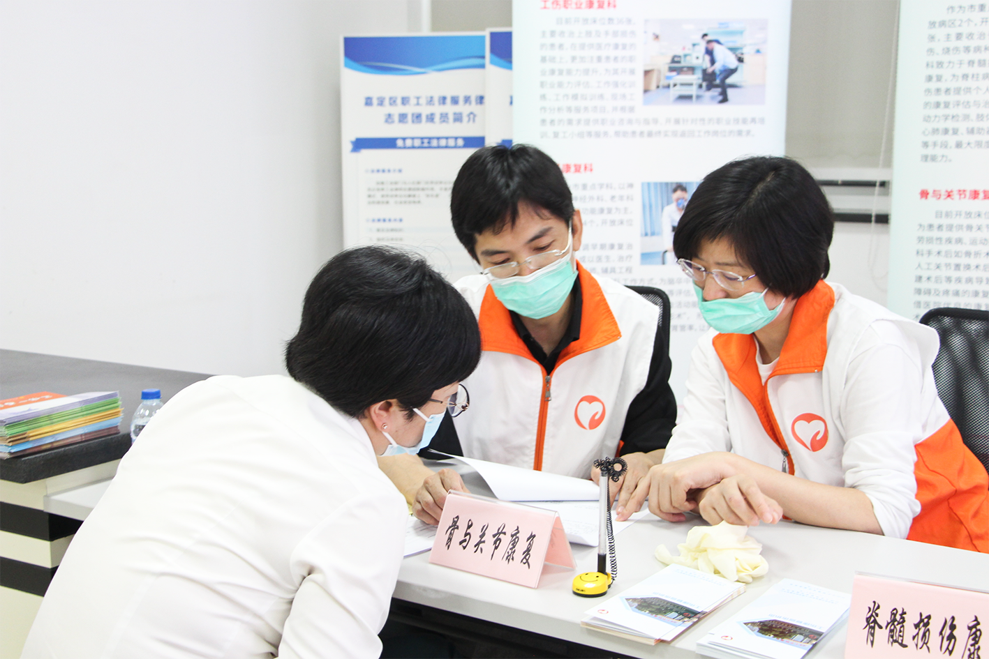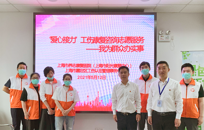 为帮助广大工伤人员及其企业单位充分了解早期康复的重要性及全面康复的理念,5月12日下午,医院(中心)与嘉定区工伤认定管理事务中心联合举办了“爱心接力”工伤康复咨询志愿活动。