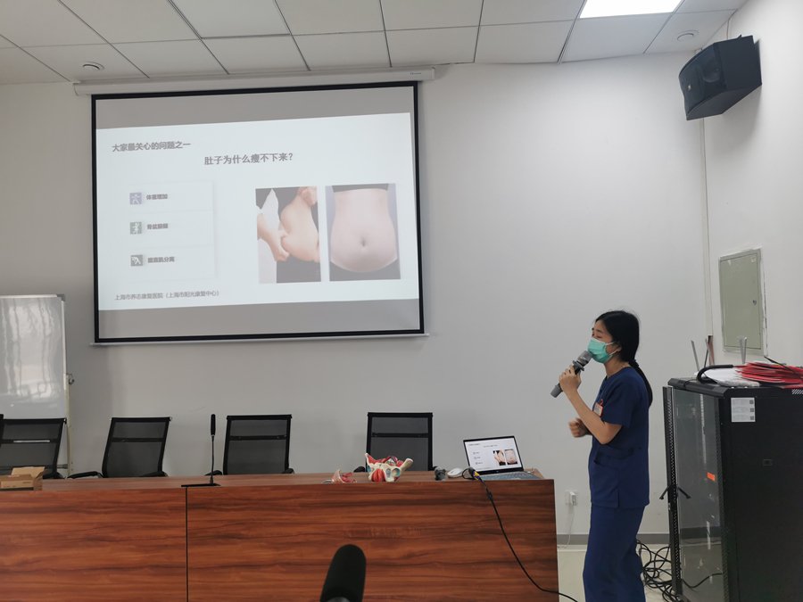 讲座上,我院盆底康复科陈伟医师根据自己多年的临床经验,提醒广大妇女同胞平时多关心自身健康,定期去医院进行检查,发现问题应及时治疗。随后,我院物理治疗师带来了主题为《产后康复早知道》的讲座,她用易懂的生动言语配合专业的示范操作将一些困扰产后妈妈的康复问题解答的详细又透彻,使得在场的年轻妈妈听的津津有味。本次活动还请了上海市医学会盆底学组委员、上海市妇女病康复专业委员会绝经学组委员陈亚萍教授为在座的中老年女性讲了一堂《优雅度过更年期》,受到了女性朋友的热烈欢迎。